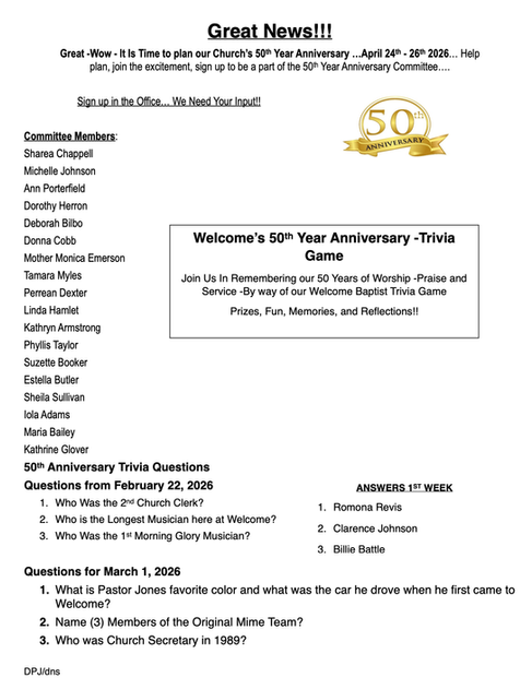 Welcome offers a variety of ministries and groups that meet regularly, with most gatherings held right here at the church. Our monthly calendars and upcoming events are shared to help you stay connected and plan to join the activities that inspire and uplift you.